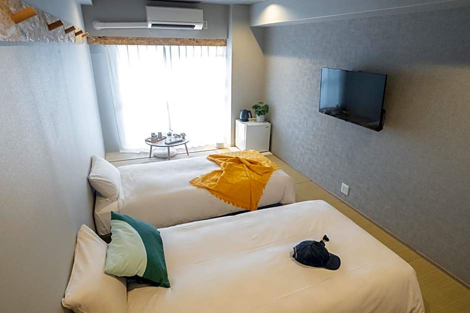 The family room includes a private bathroom, well-fitted with a bath, a shower, a bidet, a hairdryer and slippers. This family room is air-conditioned and features a seating area with a flat-screen TV, tatami, a wardrobe, a safe deposit box, as well as an electric kettle. The unit offers 3 futons.